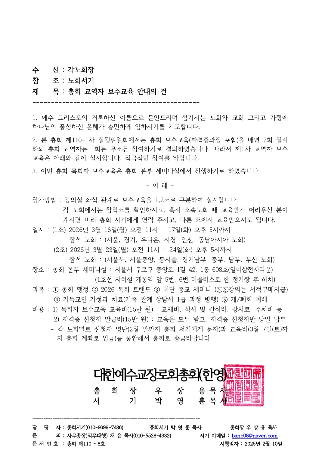 110-1차 총회 목회자 보수교육